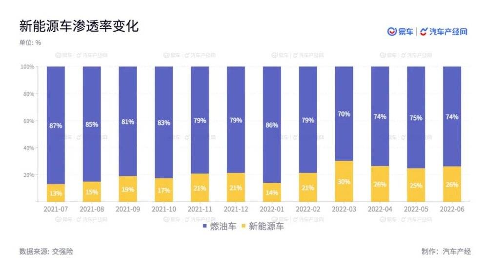 市場的「停滯」還體現在新能源車滲透率連續幾個月停留在25%左右而不再增長。