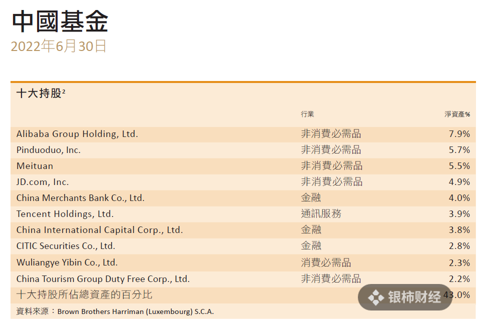 銘基環球投資(香港)的「中國基金」的前十大重倉股。來源:銘基環球投資(香港)官網
