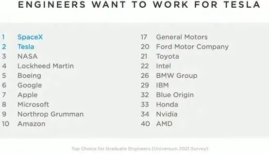 最聰明的工程師想去哪工作就可以證明公司的潛力。所以我們花了很大力氣來確保世界上最好的工程師想在特斯拉工作,但我們也為那些想在SpaceX或特斯拉同時工作的人考慮,允許他們轉換工作。去年我們有超過三百萬份工作申請,很多人對在特斯拉工作很感興趣。