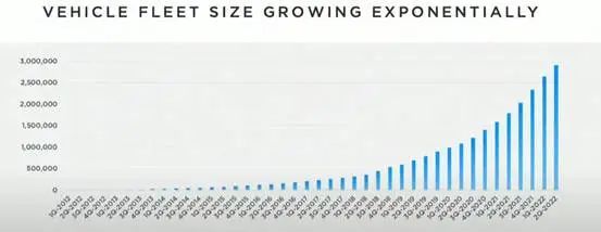 FSD beta以指數形式增長,我們現在已經行駛了4000萬英里,預計今年會超過1億英里。FSD Beta今年已經在北美地區開始廣泛部署,基本上在今年年底前FSD Beta將提供給任何有需要的人。
