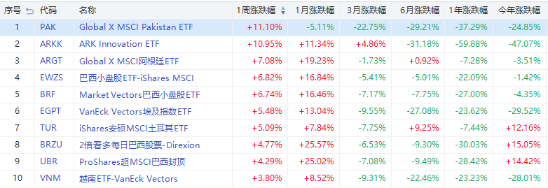 1、本周美股ETF漲幅榜