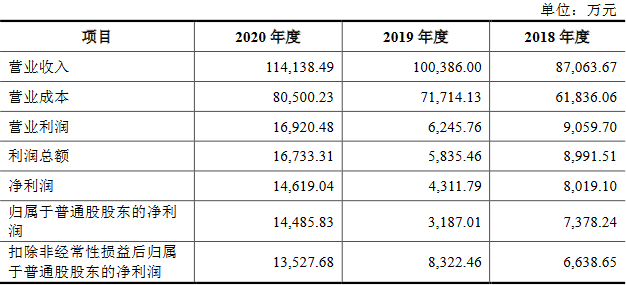 2017年至2020年,南方路機實現營業收入分別為71,924.66萬元、87,063.67萬元、100,386.00萬元和114,138.49萬元,實現歸屬於普通股股東的淨利潤分別為2,893.71萬元、7,378.24萬元、3,187.01萬元和14,485.83萬元,實現扣除非經常性損益后歸屬於普通股股東的淨利潤分別為2,101.05萬元、6,638.65萬元、8,322.46萬元和13,527.68萬元。