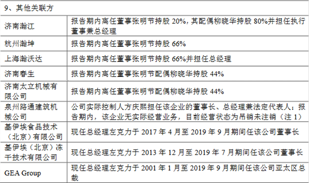 根據招股説明書,南方路機其他管理方包括濟南瀚江機電設備有限公司、杭州瀚坤機電設備有限公司、上海瀚沃達機械有限公司、濟南春生機械有限公司、濟南太立機械有限公司等。濟南春生機械有限公司系過去十二個月內曾擔任公司董事的張明節配偶持股44%的企業。上海瀚沃達機械有限公司、杭州瀚坤機電設備有限公司、濟南瀚江機電設備有限公司也是張明節及其配偶實際控制的企業。