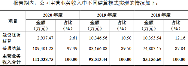 2017年至2020年,南方路機融資租賃結算下實現的銷售收入分別為7,375.30萬元、10,353.54萬元、10,346.56萬元和2,937.47萬元,佔營業收入的比例分別為10.51%、12.16%、10.50%和2.61%。