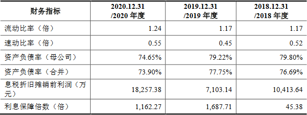 同期,同行業可比上市公司流動比率平均值分別為3.15、2.76、2.86和3.40,速動比率平均值分別為2.23、1.90、1.94和2.51,資產負債率(合併)平均值分別為36.73%、37.18%、35.94%和34.69%。