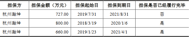 2018年3月19日、2019年1月23日、2019年7月31日,南方路機分別為杭州瀚坤擔保800.00萬元、660.00萬元和727.00萬元,擔保到期日分別為2020年1月6日、2021年4月1日、2021年8月31日。