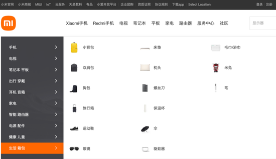 ▲ 小米的產品多樣化,涉及多種生活用品。圖 / 小米官網截圖