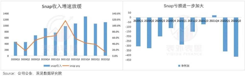 侷限條件紛紛翻臉下,Snap廣告基本盤被壓縮,2022Q2,收入增速進一步下降,利潤虧損也進一步拉大。