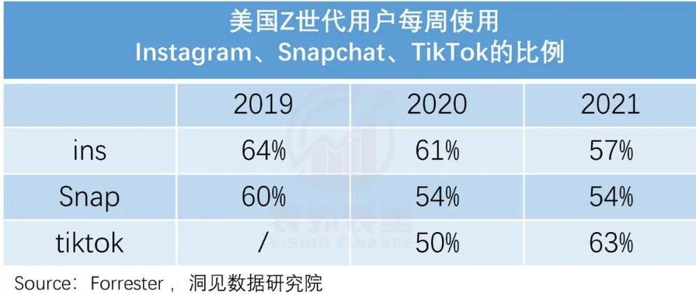 而競爭上,TikTok的衝擊已到。據一項對美國Z世代用户的調查,2020-2021年,TikTok用户的每周使用量增加了13%,已經超過了Snap。