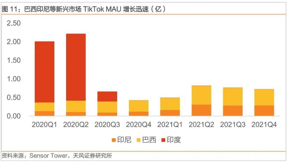 如下圖,在上述提到的Snap有意佈局的巴西以及印尼市場,TikTok用户增長迅速。