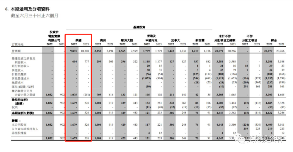 以英國基建業務為例,長江基建英國業務的最新淨利貢獻為16.79億港元,較去年同期上升219%。