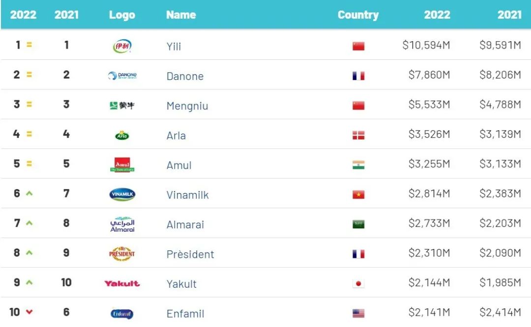 國際權威品牌價值評估機構Brand Finance(品牌金融)發佈系列榜單,伊利在"2022年全球最具價值乳品品牌10強"榜中再次奪冠,連續多年穩居"全球最具價值乳品品牌"。新冠疫情給全球乳業帶來很大的挑戰,伊利依然保持了品牌價值的大幅增長,以106億美元的品牌價值在榜單上遙遙領先。