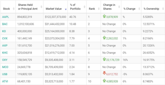 此外,美國銀行、可口可樂、雪佛龍、美國運通等依舊在其重倉股榜單上。