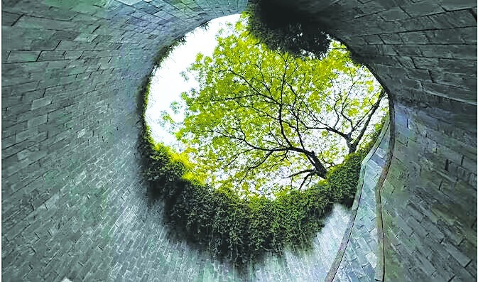 福康寧山上的這個網紅「樹洞」還有一個高大上的名字——「龍之穴」。在這個堪稱公園最驚艷的地方,遊客可以坐在洞中的階梯上拍照,從洞口往下拍,能拍到神祕感十足、不斷延伸的螺旋階梯,從下往上拍必須用廣角鏡頭,可以拍到洞口附近歷史悠久的老樹,茂密枝葉鋪滿天井的天空,井邊掛滿綠色牆蔓,同時樹的影子映在「樹洞」的牆上,如同愛麗絲夢遊仙境一般。除了這兩種常見的拍攝角度,隧道一側的小出口也有高大的牆壁,也適合拍照。不過,遊客坐在扶梯的牆上需要點膽量,恐高的人可能會害怕。當然,一些攝影達人能想出其他的角度,拍攝出的畫面令人稱奇。