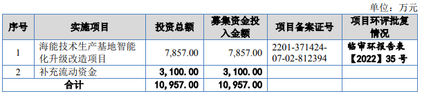 本次IPO擬募資1.1億元,主要用於海能技術生產基地智能化升級改造項目、補充流動資金。