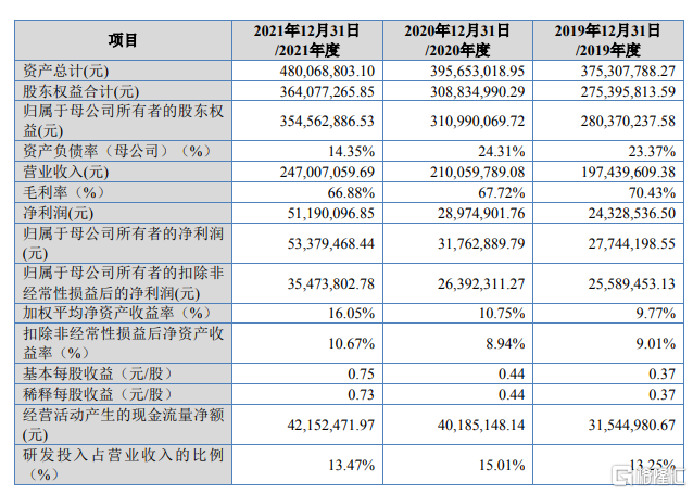 報告期內,海能技術的收入規模逐年增長,營業收入分別為 1.97億元、2.10億元和 2.47億元,淨利潤分別為2432.85萬元、2897.49萬元、5119.01萬元。