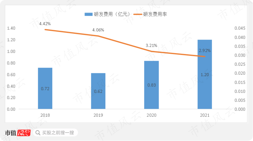 近兩年研發費用保持增長,但研發費用率不高,且出現明顯下滑,2020年法國百鍊集團並表造成營收大幅增加,研發費用率可能受其並表影響。