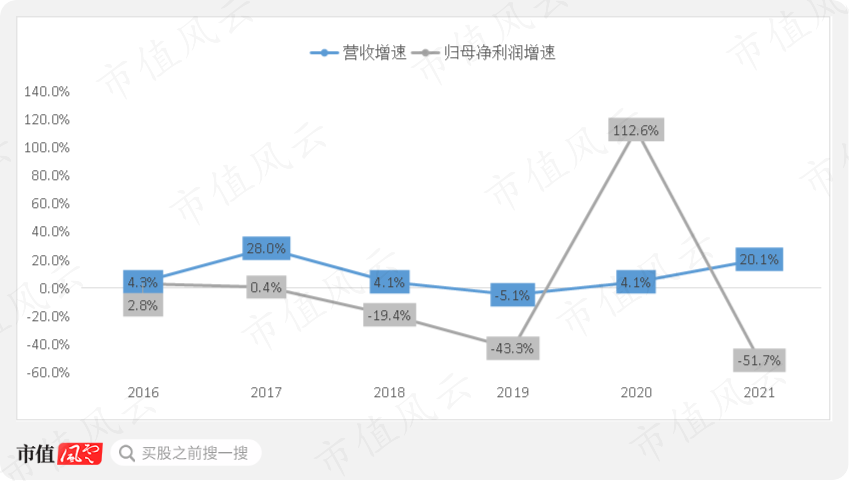 (4)2016-2019年,業績整體低迷,歸母淨利潤增速均低於營收增速。