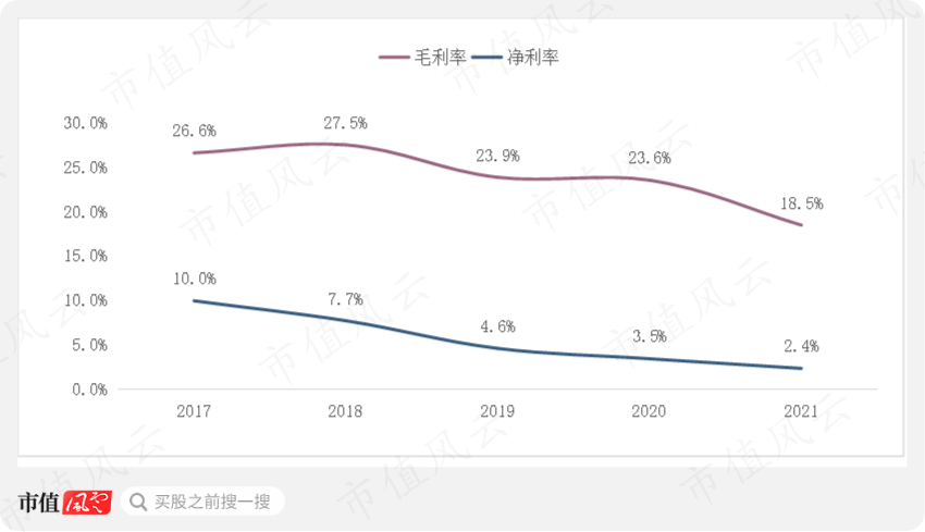 從盈利能力來看似乎也能驗證,近幾年毛利率和淨利率整體均呈現下滑態勢。