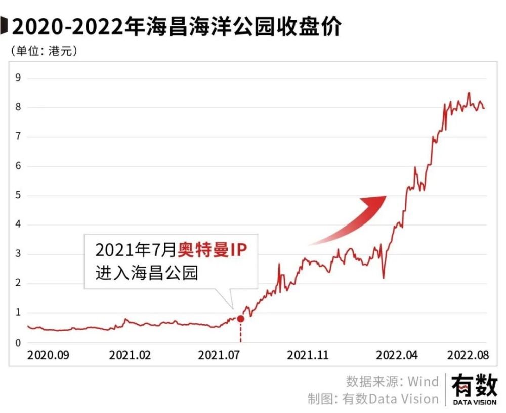 而從海洋動物到奧特曼,標誌着海昌海洋公園從「遊樂園」到「主題公園」的轉向。這一轉也打開了估值想象力的天花板,人們自然也會相信有光了。
