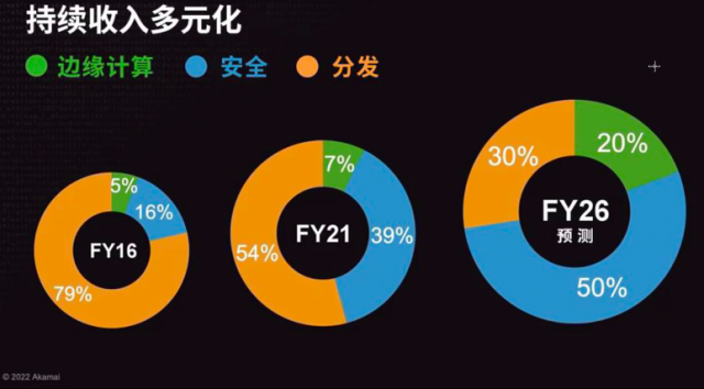 在安全領域,張軻透露:「我們認為到2026財年Akamai的‘安全收入’將會達到整個公司收入的一半甚至以上,分發類收入會達到30%、邊緣計算類的收入會達到20%,這是我們對於自己業務的預測,也是通過Akamai多年以來對於安全類解決方案的深耕,以及通過收購、自我研發不斷的豐富我們的解決方案,能夠構建我們的產品路線圖希望達到的一個目標。」