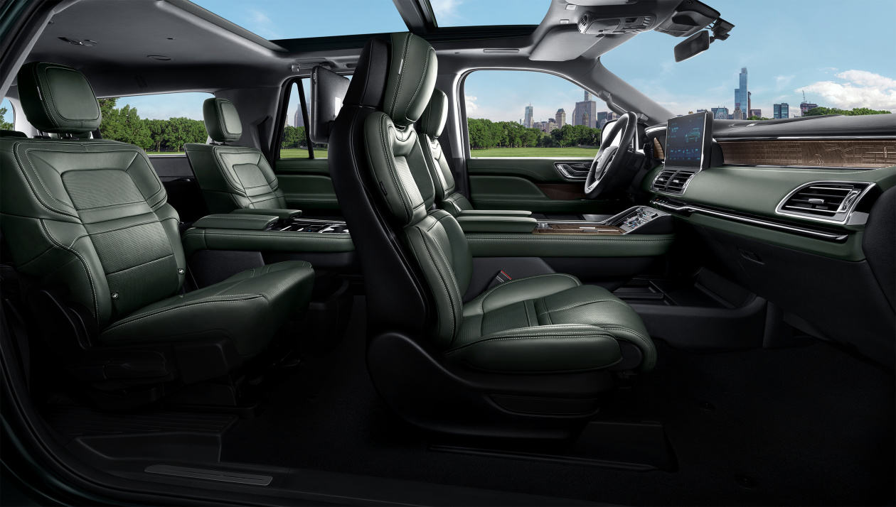 全新林肯領航員採用七座佈局,兼顧同級至優的第三排空間,讓每一位乘客都能尊享藴藏於磅礴車身之內的宏闊空間,胸懷天地的豪華氣場不彰自顯。第三排座椅不僅擁有電動椅背調節,更有着豐富的舒享配置,乘坐體驗媲美二排。超大的行李廂空間,全面滿足客户日常多樣化的儲物需求。