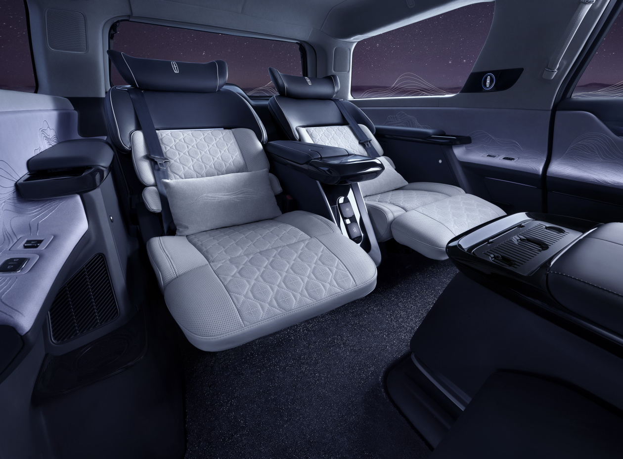 一方一隅,私享隨心。座艙內的4種沉浸式私享場景模式,可根據車主的個性化需求隨心調節,覆蓋迎賓、休閒、娛樂、商務全場景,真正「懂您所需」,將美好呈至眼前。位於后排座艙的智能電視支持無線投屏功能,無論是商務會議或影音娛樂,都能隨時隨地開啟,不受場地之約束,盡享尊貴私享空間。浩瀚星河,內藴自顯。座艙內採用高級天鵝絨星光地毯、至臻高級麂皮星海式律動星光頂與星河式透光呼吸飾條遙相呼應,滿眼星輝璀璨,伸手即可摘星。
