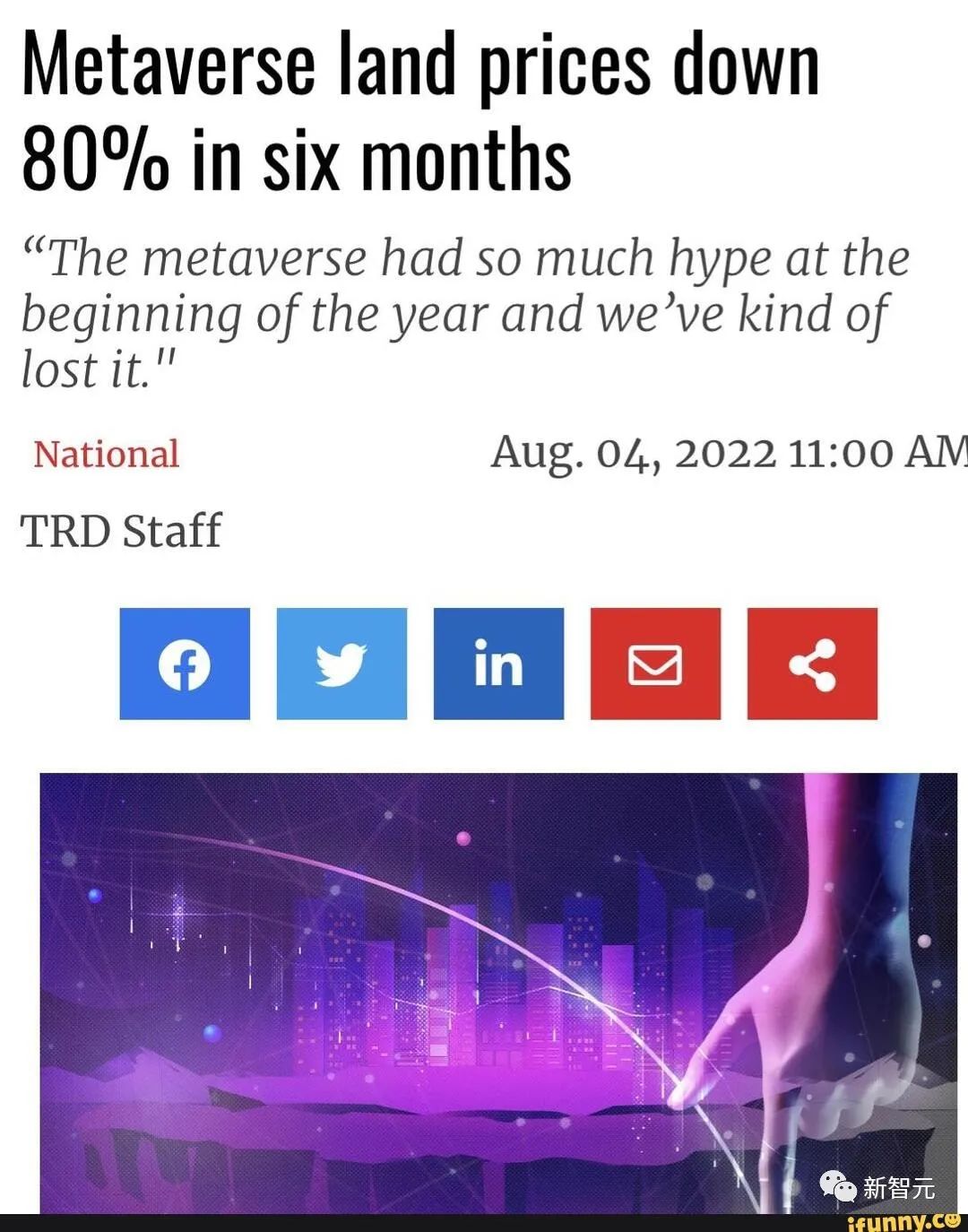 可以看到,截至今年8月4日,元宇宙里的地價已經跌了80%。