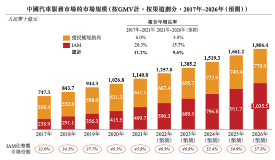 汽車服務市場規模預測,來自招股書