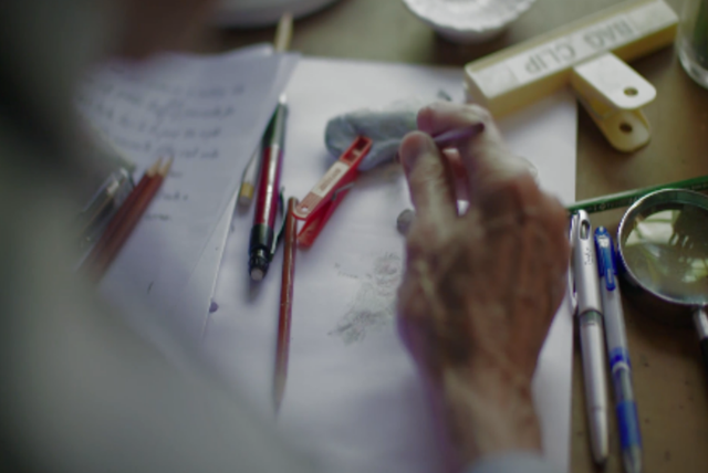 雷蒙德·布里格斯工作場景。畫面來自紀錄片《雷蒙德·布里格斯》。