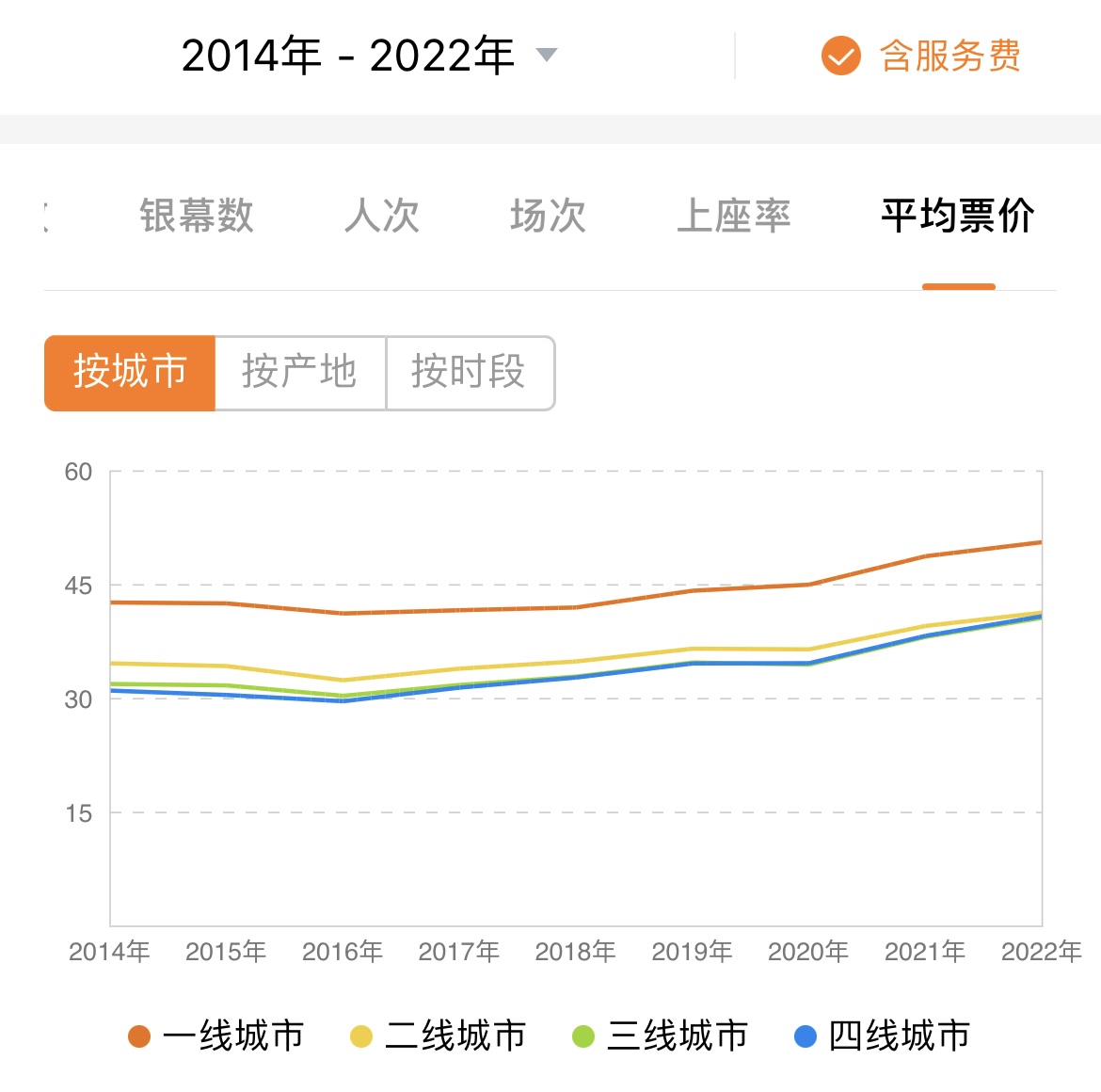 對於電影平均票價上漲的原因,劉振飛向記者解釋稱,自2020年以來產業鏈運行時常受疫情影響,使得無論是生產上游的片方、還是放映下游的影院,都面臨着項目資金回收停滯、經營成本提升、風險增加等諸多問題。