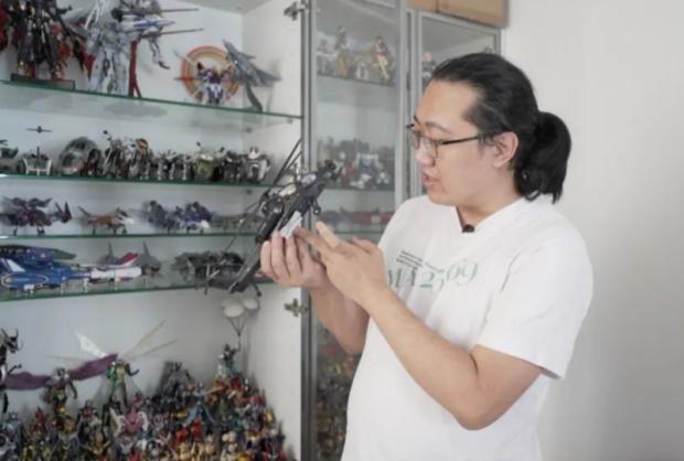 他的收藏包括高達系列的知名款以及《新世紀福音戰士》中的零號機、初號機等各種類型的機甲模型,會按照角色把模型「湊齊」。