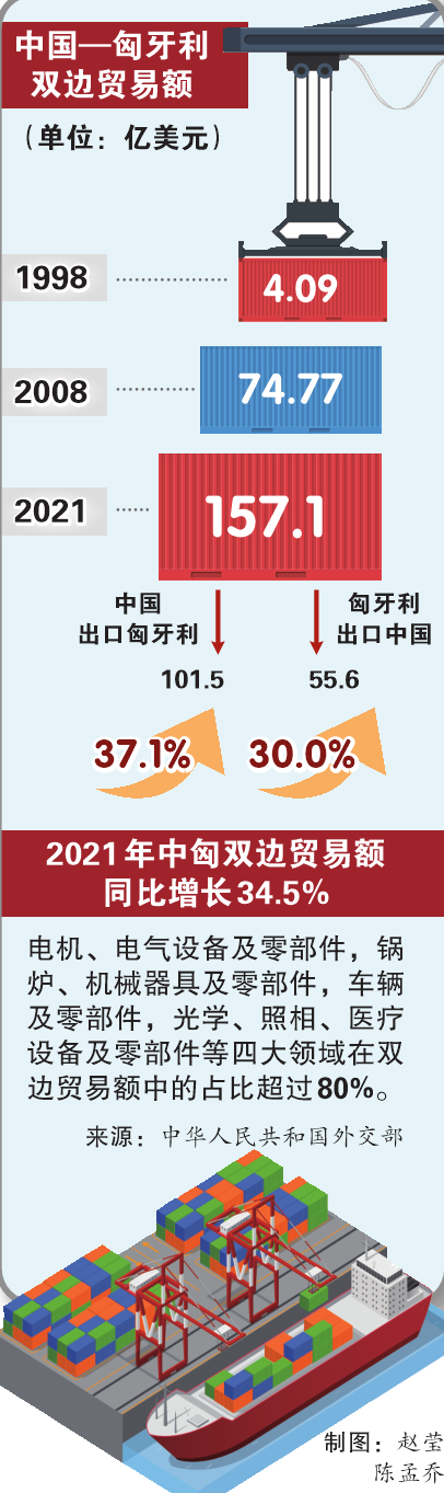 除此以外,華為、中興、中國銀行、比亞迪等中國企業紛紛落地匈牙利,密集程度在歐洲名列前茅。據瞭解,中國已成為匈牙利最大的投資國、歐洲之外的第一大貿易伙伴。2021年,中匈雙邊貿易額同比增長34.5%。