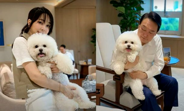 有網友提出質疑:金建希作為「第一夫人」遛狗溜到辦公區,還進總統辦公室來了一組私生活照,真當這是自家后花園啦?