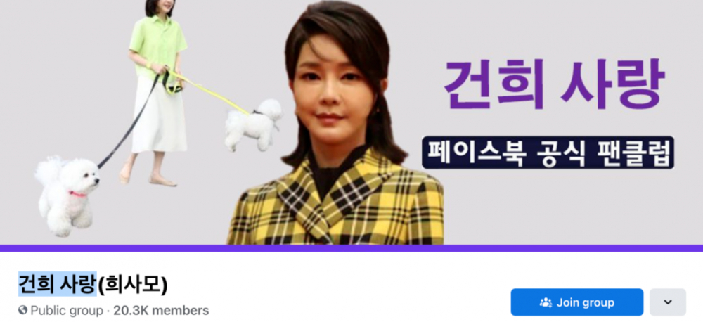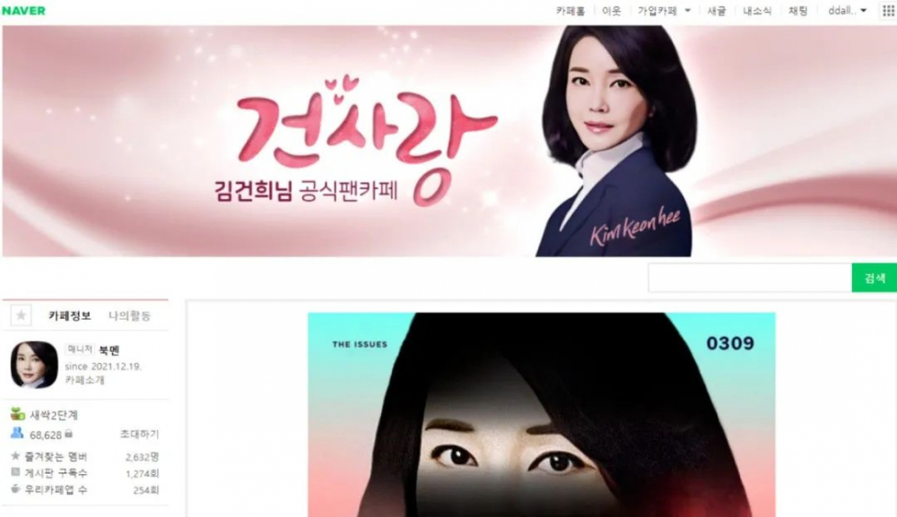 一名成員發佈了一篇題為「韓流明星金建希」的文章,稱在中國臺灣的門户網站實時搜索排名中,金夫人位居第一。另一名成員號召大家「驕傲地行動起來」。