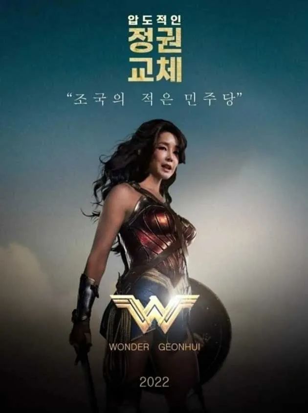 有人負責搞宣發,專業P圖,將金建希的臉與電影海報組合在一起,有了「Wonder Geon Hee」(神奇女俠版金建希)↓↓