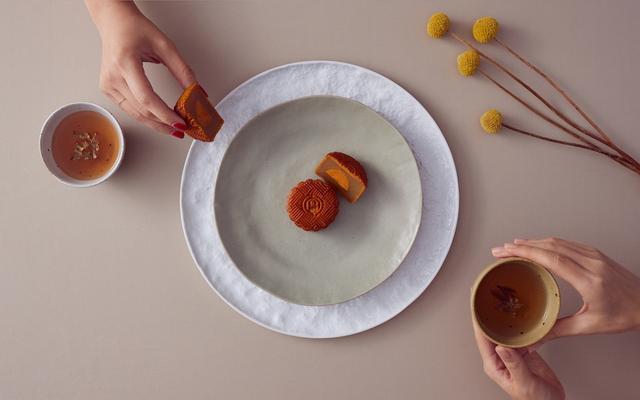 另一款享月中秋禮盒十分小巧,明亮橘色為底,印有瑰麗專屬暗紋,內里巧妙藏有六塊月餅,分別是陳皮豆沙、奶黃流心、蛋黃白蓮蓉三種口味。其中,細膩綿軟的奶黃流心月餅一直是北京瑰麗酒店的招牌,蛋黃白蓮蓉內餡更為傳統,可以品嚐到經典的中秋味道。