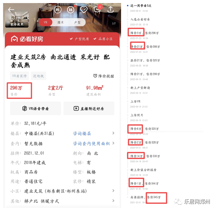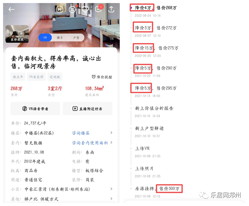本着質疑的心態,樂居新媒體還聯繫了中介詢問三環內公認的高價值片區高鐵商圈的二手房。讓人同樣難以置信的是,全鄭州價值最為明朗的高鐵商圈,同樣也未能擺脫降價事實。