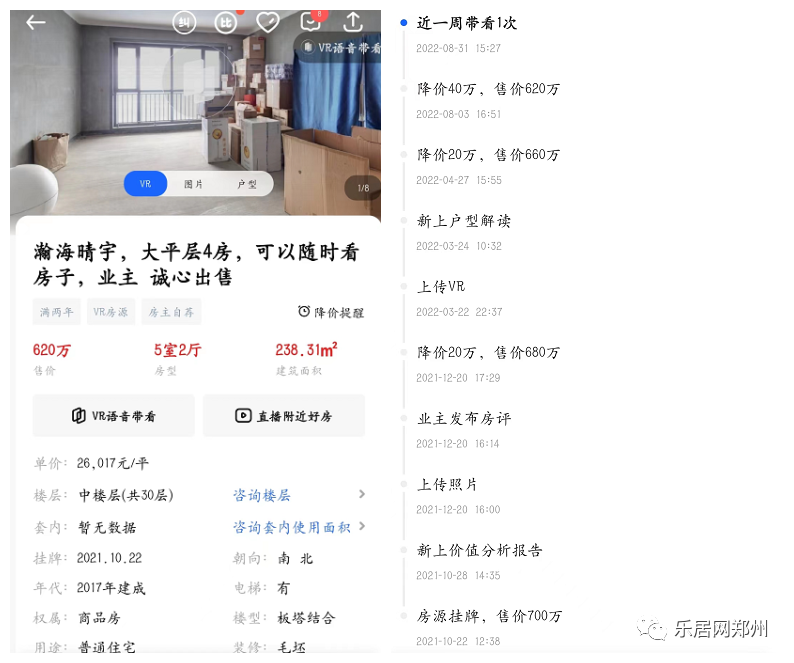 另一房源已裝修好的238.31㎡5室2廳房源,2021年10月22日掛牌,售價700萬,2021年12月20日降價20萬,2022年4月27日降價20萬,8月3日降價40萬,目前賣620萬,降價幅度80萬元。