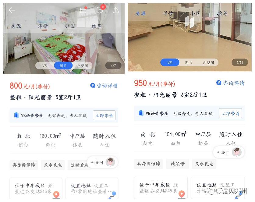 而同小區同面積段的房源整租,租金顯示每月僅1000元/月,稍微大些的户型租金也才1200元/月。