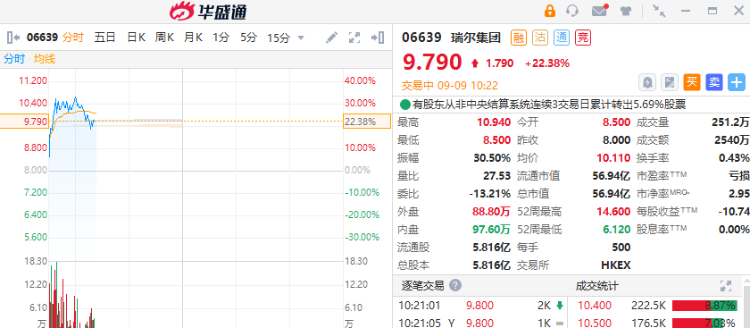 華盛資訊9月9日消息,港股牙科概念集體走強,截至發稿,瑞爾集團一度漲超30%,現漲22.38%,報9.79港元,公司為國內最大的高端口腔連鎖醫療集團;現代牙科漲超9%,時代天使漲逾8%。消息方面,昨日種植牙醫療服務政策發佈,機構預測三級公立醫院種植牙價格降幅好於預期。