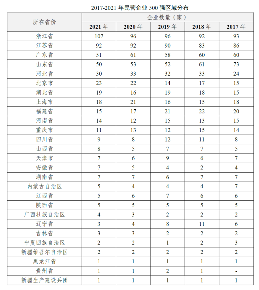 僅浙江、江蘇、廣東、山東四個龍頭省份,民營500強企業就佔了整整300席。