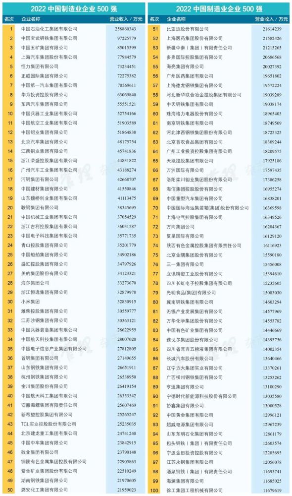 近日,2022年中國企業500強、中國民營企業500強、中國製造企業500強榜單先后揭榜。