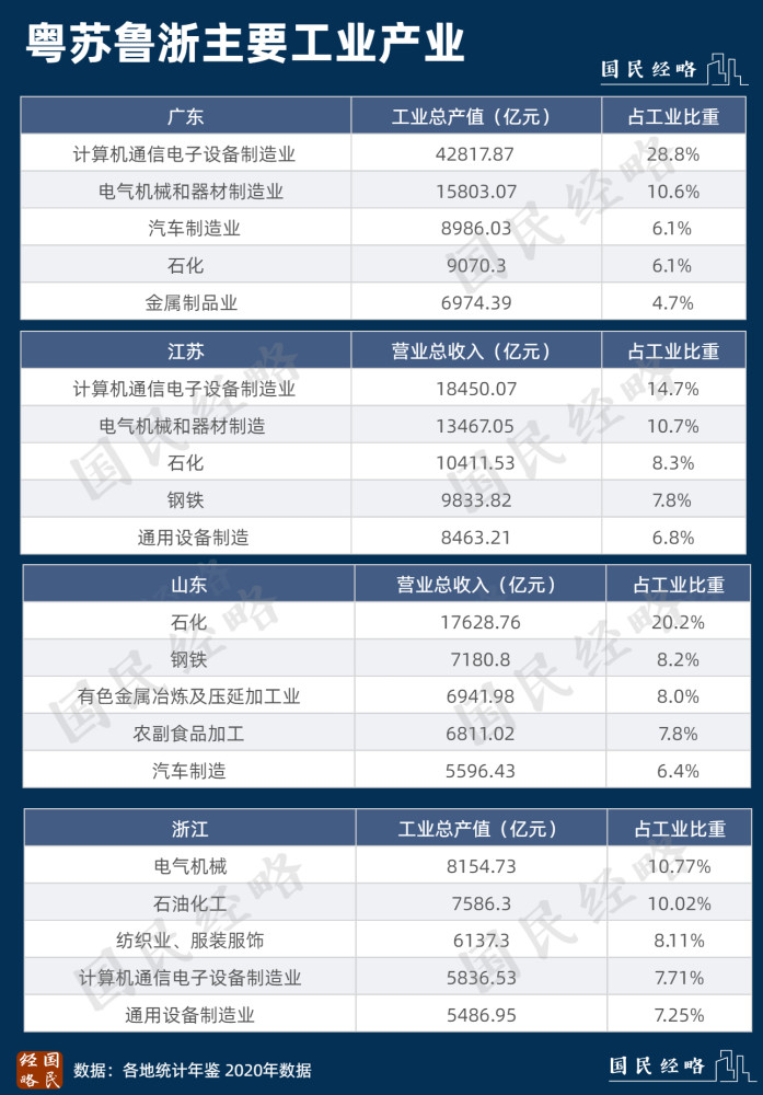 這也是我國經濟TOP4大省,同爲製造業大省,但各省的支柱產業和代表企業不盡相同。