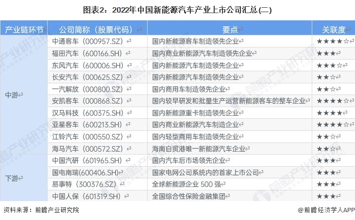 1、新能源汽車產業上市公司匯總