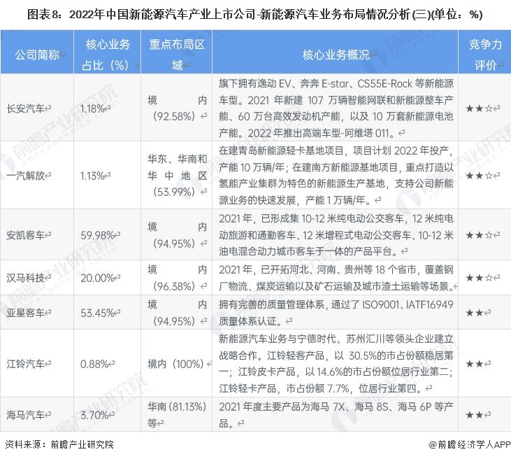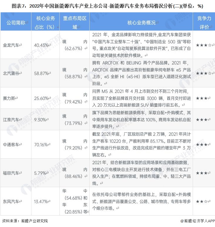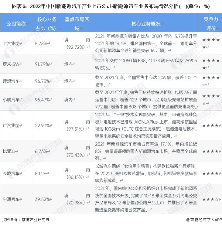 2、新能源汽車產業上市公司業務佈局對比