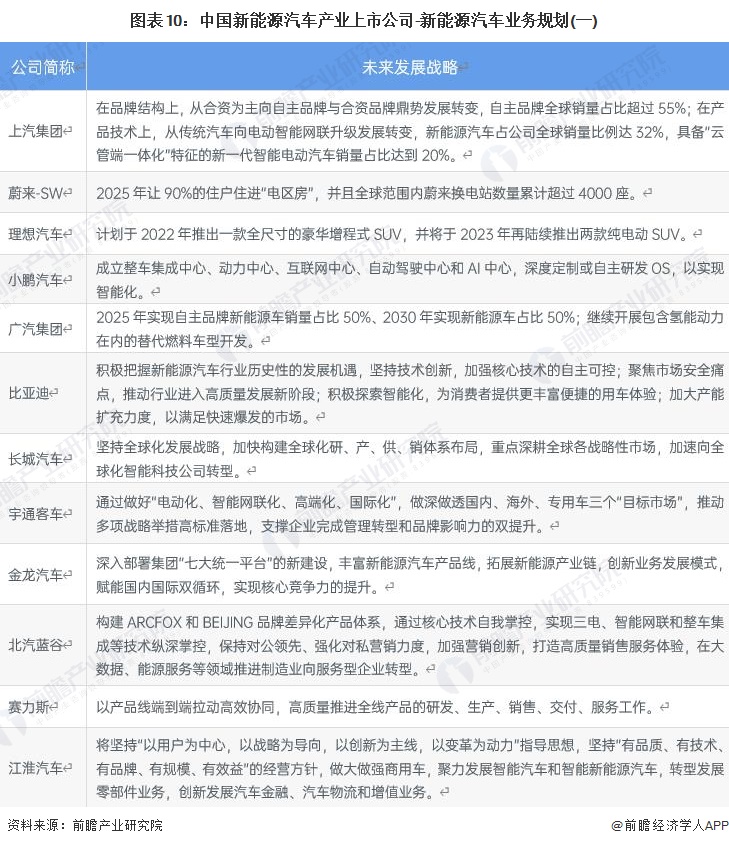 4、新能源汽車產業上市公司核心業務規劃對比