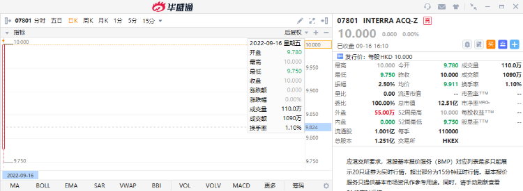 本周港股市場,Interra Acquisition今日成功掛牌,成為港交所第四家SPAC公司,股價無太大浮動,根據發售初步提呈發售的發售證券獲輕微超額認購。