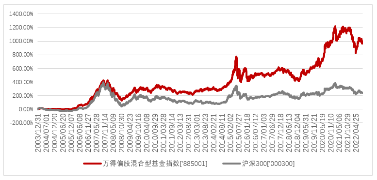 WIND數據顯示,截至9月6日,偏股混合型基金自2003年12月31日以來累計上漲981.53%,同期滬深300指數上漲235.70%,實現了745.83%的超額回報率。