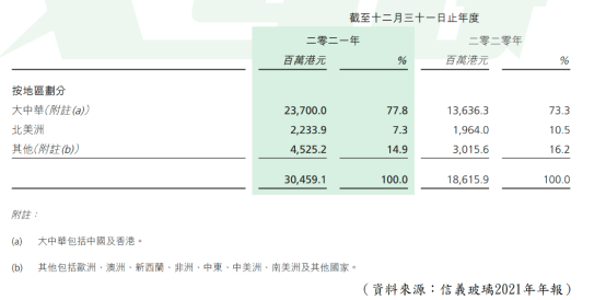 【圖1】--信義按地區劃分之銷售